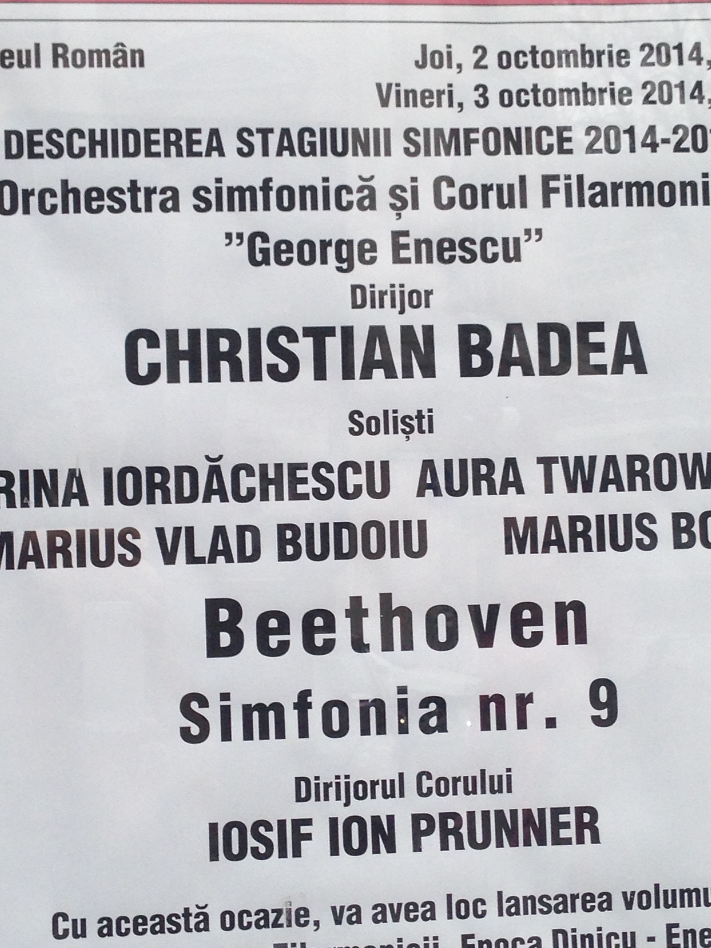 I could translate it enough to see that there was a performance of Beethoven’s Ninth on that night at 7:00 at the Atheneum. Here we had been talking about that symphony at lunch and by pure serendipity, we had a chance to hear it played that evening by the George Enescu Philharmonic. We found the box office, secured tickets and walked inside the Atheneum, an art work in itself with its confection of color, curving lines, sinuous sculptures, and floor to ceiling decorative flourishes.